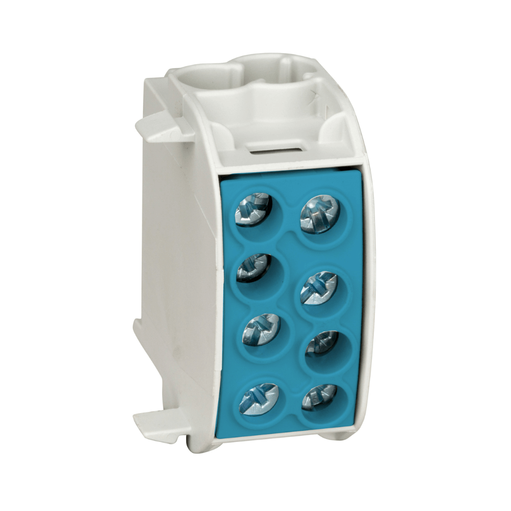 Schrack IKA26220-X-3 este o clema de derivatie universala albastra, special conceputa pentru conexiuni sigure intre conductori de aluminiu si cupru cu sectiuni de pana la 35.0 mm². Aceasta solutie profesionala asigura ramificarea ordonata a nulului in tablourile electrice prin intermediul a 4 puncte de conexiune robuste.
