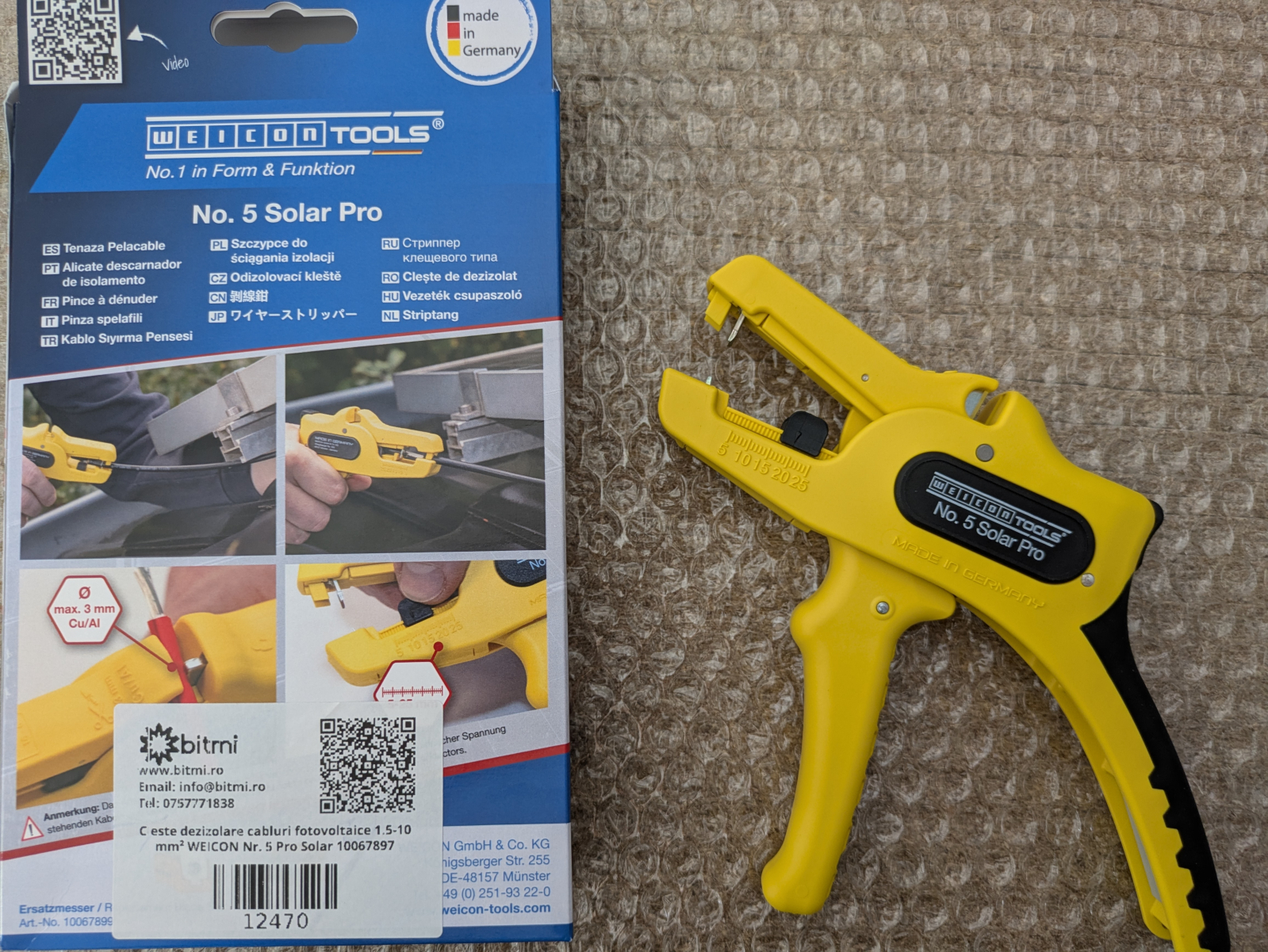 Clestele de dezizolare WEICON Nr. 7 Solar 10025011 este destinat indepartarii mantalei si dezizolarii cablurilor fotovoltaice uzuale cu sectiunea intre 1.5 si 6.0 mm2. Produsul este robust si precis, ideal pentru lucrari profesionale in domeniul instalatiilor solare.