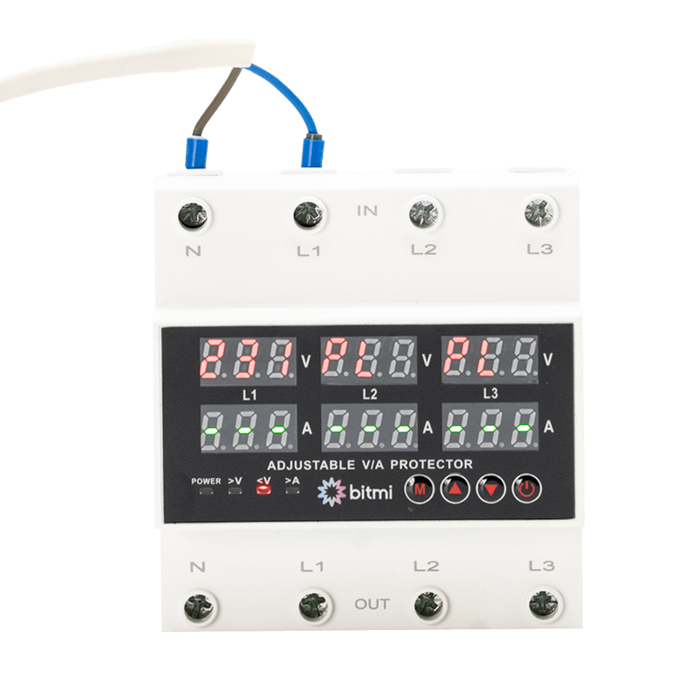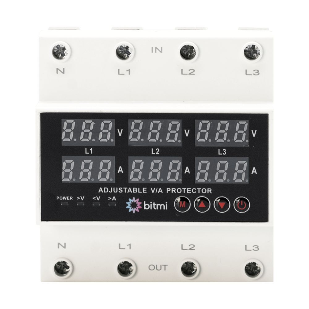 Bitmi 11854 este un releu trifazat de protectie la tensiune si curent, care functioneaza in mod asincron (ASY), analizand fiecare faza individual. Dispozitivul declanseaza imediat ce detecteaza o abatere de tensiune sau curent pe oricare dintre faze, fara a astepta aparitia unui dezechilibru general in retea. Aceasta functionare il face ideal pentru aplicatii unde echipamentele trifazate sunt sensibile la fluctuatii, precum automatizari industriale, panouri de comanda, motoare si pompe. Pragurile de protectie si timpii de intarziere sunt reglabilI, iar montajul pe sina DIN permite integrarea usoara in tablouri electrice.