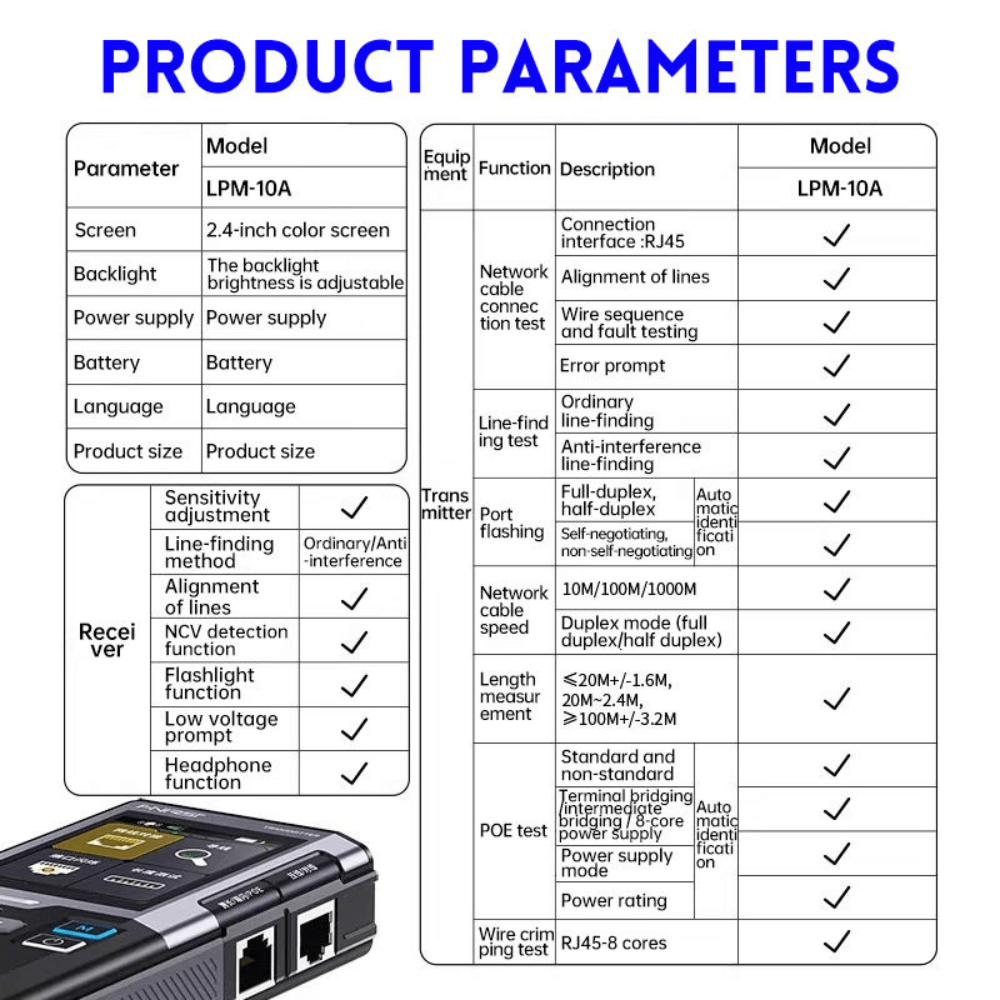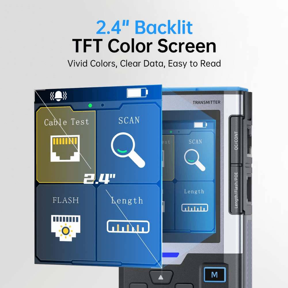 Testerul multifunctional FNIRSI LPM-10A este un instrument digital inteligent si compact conceput pentru identificarea rapida a cablurilor si diagnosticarea completa a retelelor de date si voce. Acest dispozitiv avansat combina functiile de testare PoE si masurare a lungimii intr-o singura unealta profesionala. Integrarea ecranului color de 2.4 inch de inalta rezolutie, transforma diagnoza complexa intr-o experienta vizuala simpla si intuitiva.