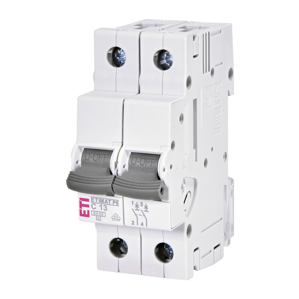 ETIMAT P6 2P C13 001900229 este un disjunctor modular bipolar cu curent nominal de 13A si caracteristica C. Functioneaza la 415V AC, frecventa 50/60Hz, cu capacitate de rupere de 6kA. Este destinat protectiei circuitelor impotriva suprasarcinilor si scurtcircuitelor.