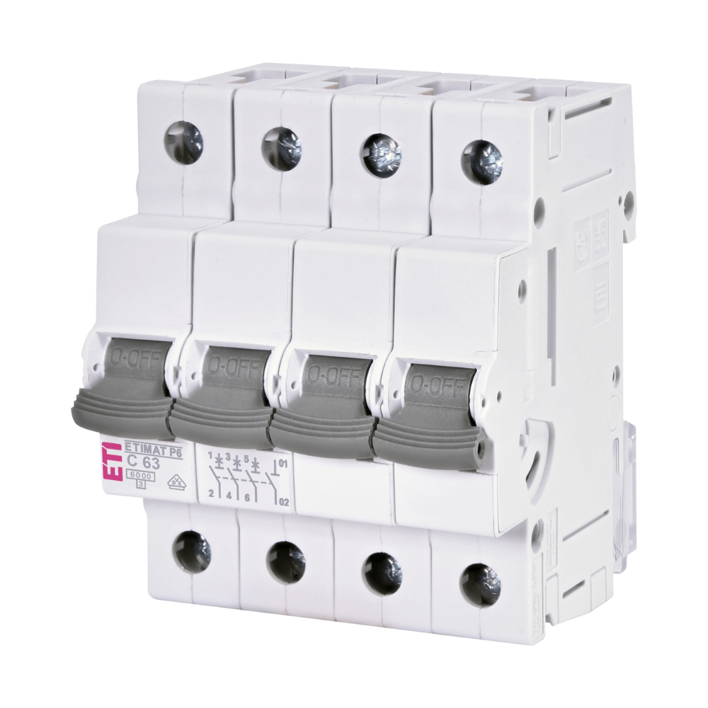 ETIMAT P6 3P+N C63 001900436 este un intrerupator automat pentru circuite 3P+N cu curent nominal de 63A si curba C. Functioneaza la 415V AC si frecventa 50 sau 60Hz si are capacitate de rupere de 6kA pentru protectia impotriva suprasarcinilor si scurtcircuitelor.