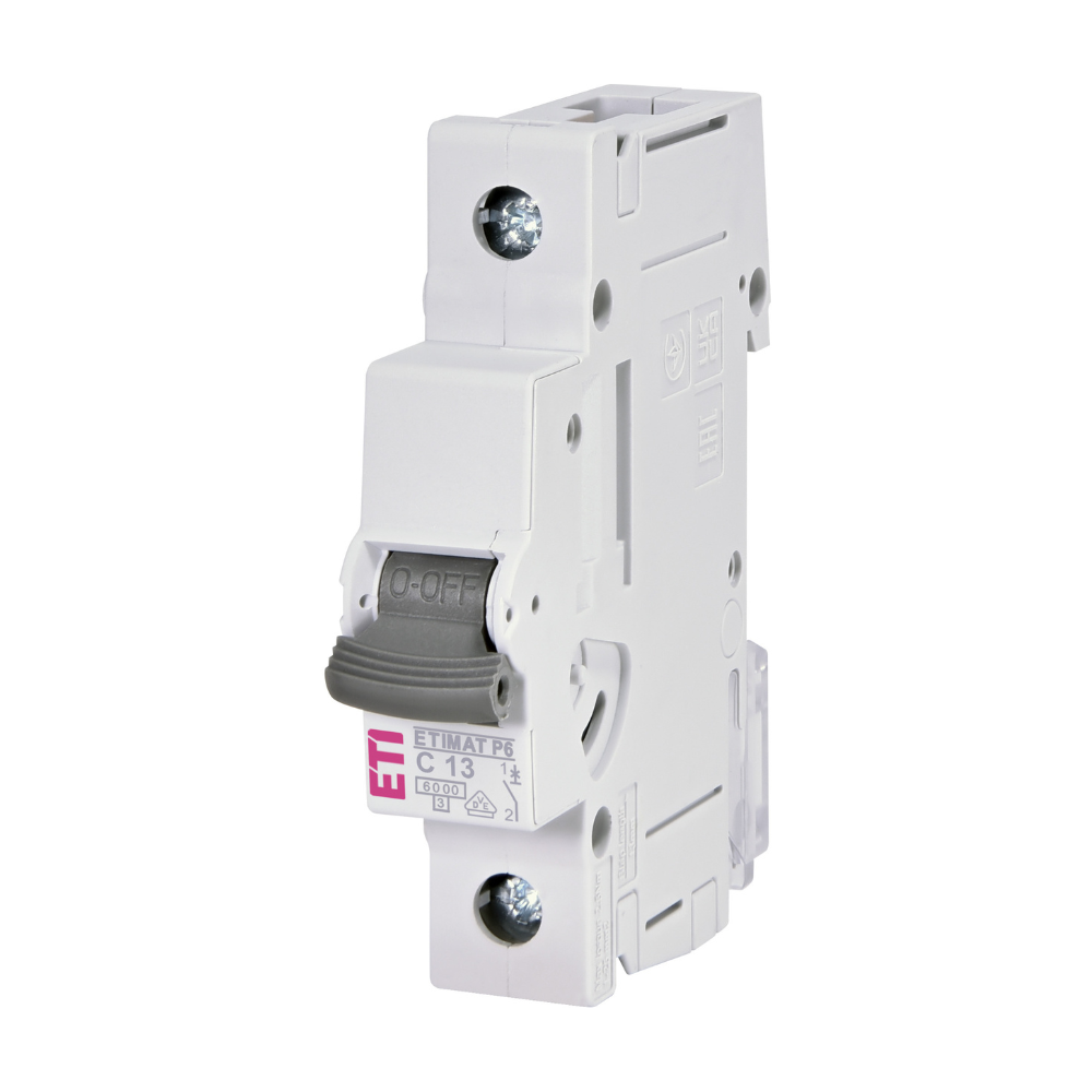 ETIMAT P6 1P C13 001900029 este un disjunctor modular cu curent nominal de 13A si caracteristica C. Functioneaza la 240/415V AC, frecventa 50/60Hz, cu capacitate de rupere de 6kA. Este destinat protectiei circuitelor impotriva suprasarcinilor si scurtcircuitelor.