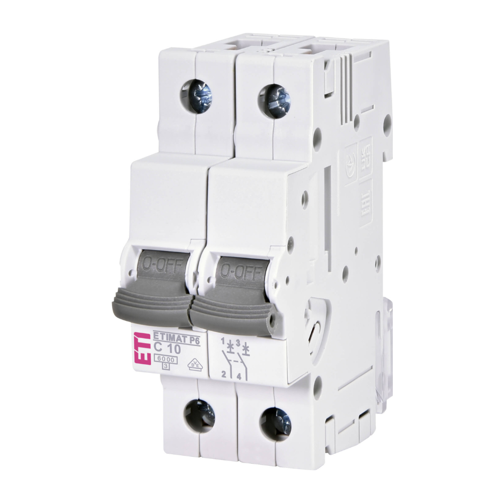 ETIMAT P6 2P C10 001900228 este un disjunctor modular bipolar cu curent nominal de 10A si caracteristica C. Functioneaza la 415V AC, frecventa 50/60Hz, cu capacitate de rupere de 6kA. Este ideal pentru protectia circuitelor impotriva suprasarcinilor si scurtcircuitelor.