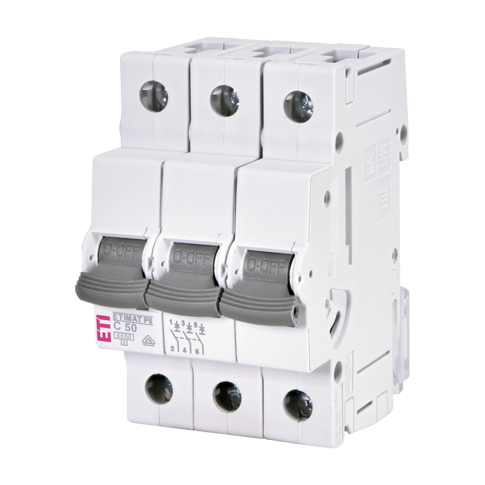 ETIMAT P6 3P C50 ETI 001900335 este un intrerupator automat tripolar cu curent nominal de 50A, caracteristica C, tensiune de lucru 415V AC, frecventa 50/60Hz si capacitate de rupere de 6kA. Ideal pentru protectia circuitelor electrice impotriva suprasarcinilor si scurtcircuitelor.