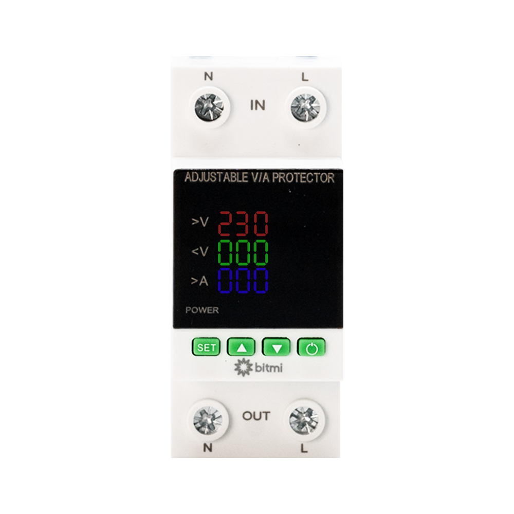 Bitmi 11855 este un releu inteligent de protectie monofazat, destinat monitorizarii si controlului tensiunii si curentului in instalatii AC sau DC. Dispozitivul detecteaza supratensiunea, subtensiunea si supracurentul si intrerupe automat alimentarea pentru a preveni defectarea echipamentelor conectate. Dupa revenirea parametrilor in limitele normale, releul reconecteaza automat circuitul, respectand timpii de intarziere configurati de utilizator. Afisajul digital LED permite vizualizarea clara si simultana a valorilor de tensiune si curent in timp real. Datorita compatibilitatii AC/DC si a curentului reglabil pana la 63A, Bitmi 11855 este potrivit pentru aplicatii rezidentiale, comerciale sau industriale, inclusiv surse DC, sisteme fotovoltaice, automatizari sau tablouri electrice.