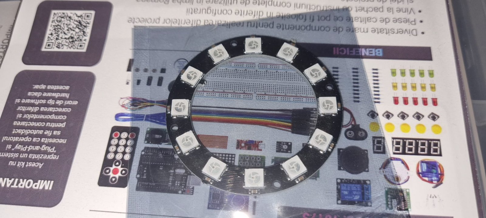 Acest modul tip inel are 12 LED-uri RGB care pot fi controlate cu ajutorul unui microcontroler si prezinta protectie la polaritate inversa. LED-urile pot fi programate pentru a crea diferite efecte si tipare.