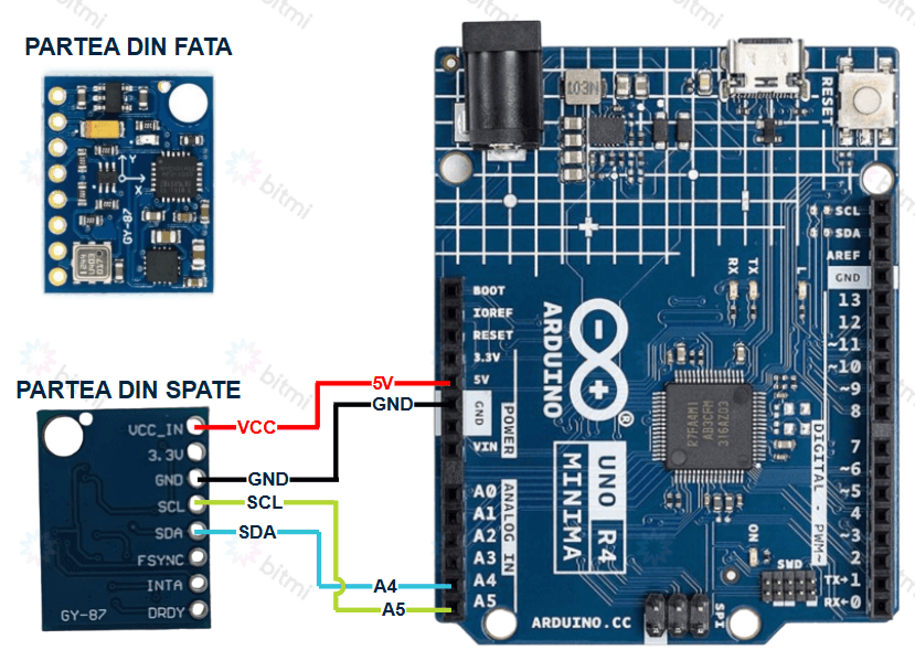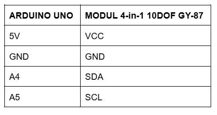 Schema de conectare senzor 10DOF GY-87, compatibil Arduino: