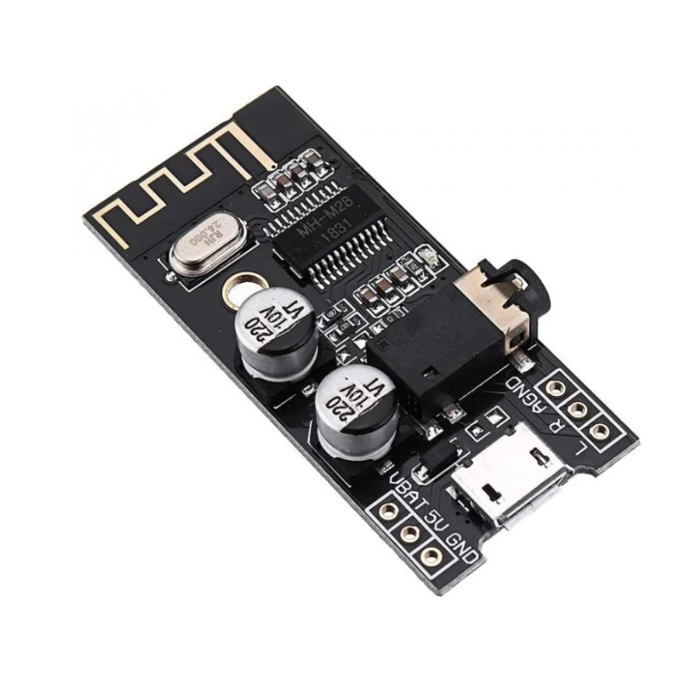 Modulul Bluetooth audio MH-M28 este o solutie practica si eficienta pentru adaugarea conectivitatii wireless intr-un sistem audio existent. Suporta Bluetooth 4.2 cu BLE, oferind redare stereo de inalta calitate si o raza de functionare de pana la 10 metri. Iesirea audio se face prin jack stereo de 3.5 mm, iar alimentarea se realizeaza usor prin conectorul microUSB sau direct prin pini.