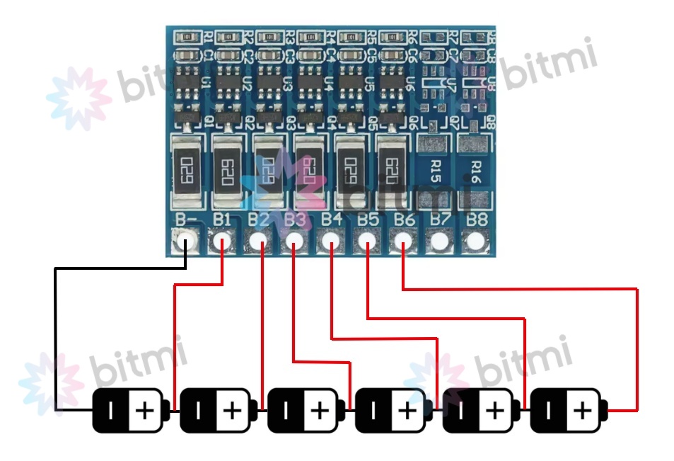 IMPORTANT: Acest modul nu inlocuieste un BMS si nu ofera protectii la supratensiune, subtensiune, supracurent sau scurtcircuit. Este destinat exclusiv pentru echilibrare pasiva in timpul incarcarii.