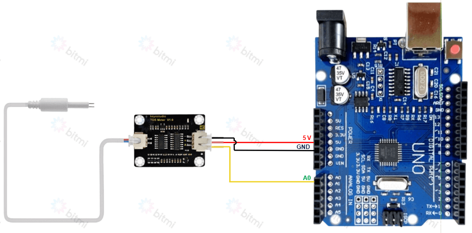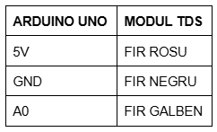 Schema de conectare senzor calitate apa, compatibil Arduino: