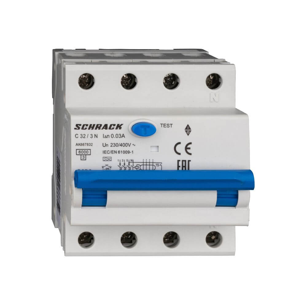 SCHRACK TECHNIK Intrerupator automat diferential 3+N, AMPARO, 6kA, C 32A, 30mA, tip A, SCHRACK AK667832
