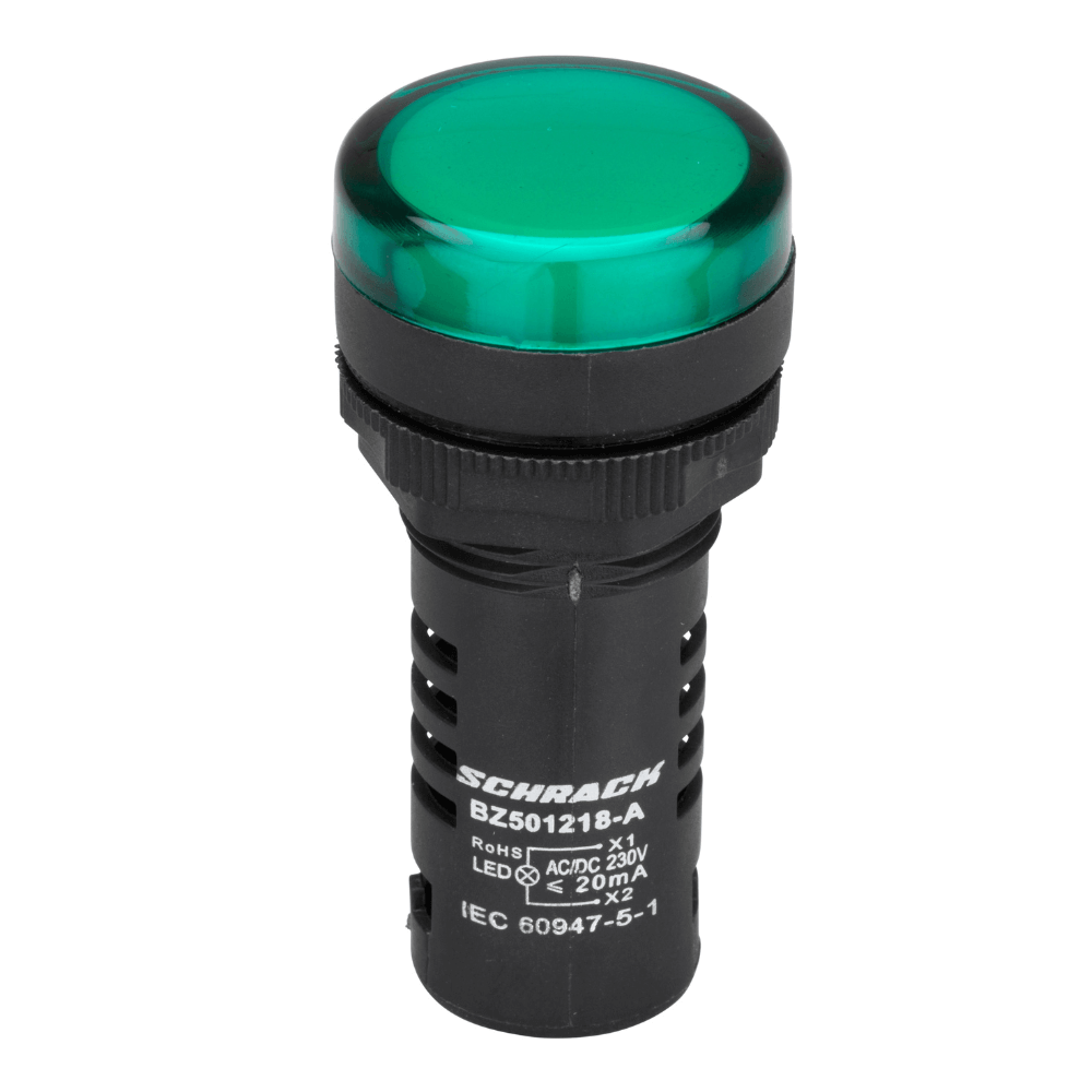 Lampa de semnalizare cu LED, monobloc, 230V-AC/DC, verde, SCHRACK BZ501218-B