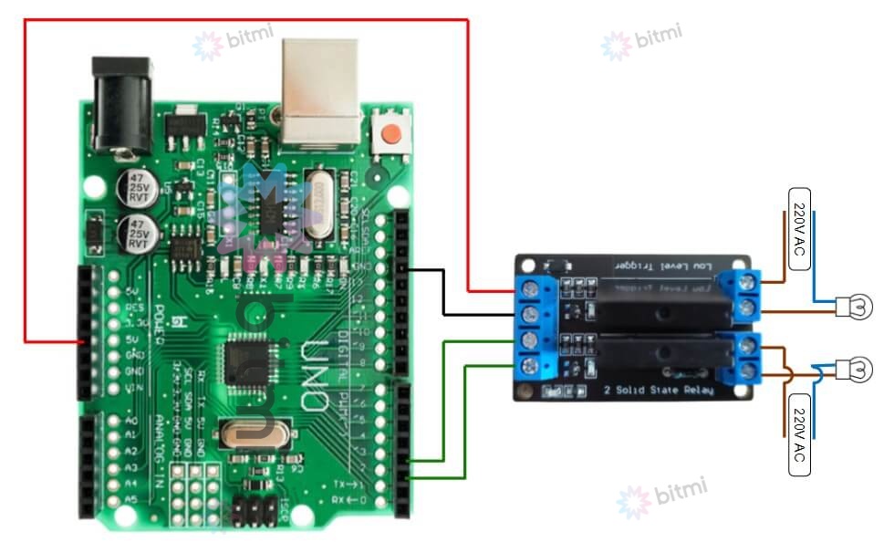 Schema conectare modul releu SSR 5V cu 2 canale :