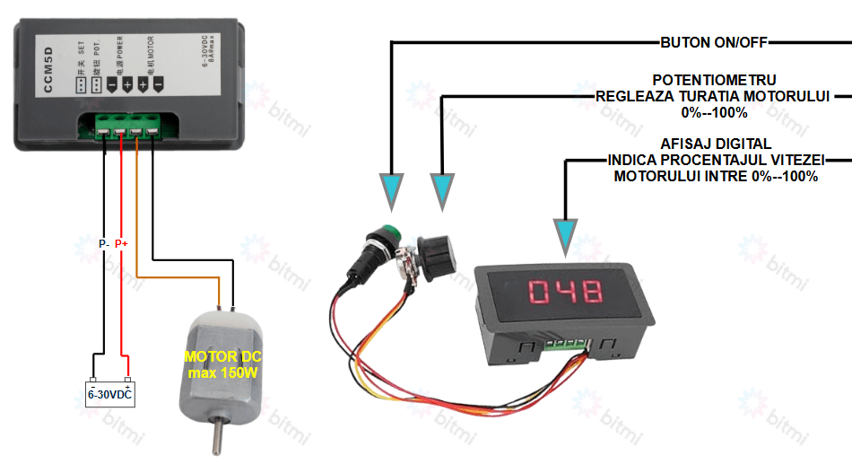 Specificatii regulator turatie motor DC 6-30V, CCM5D cu control PWM: