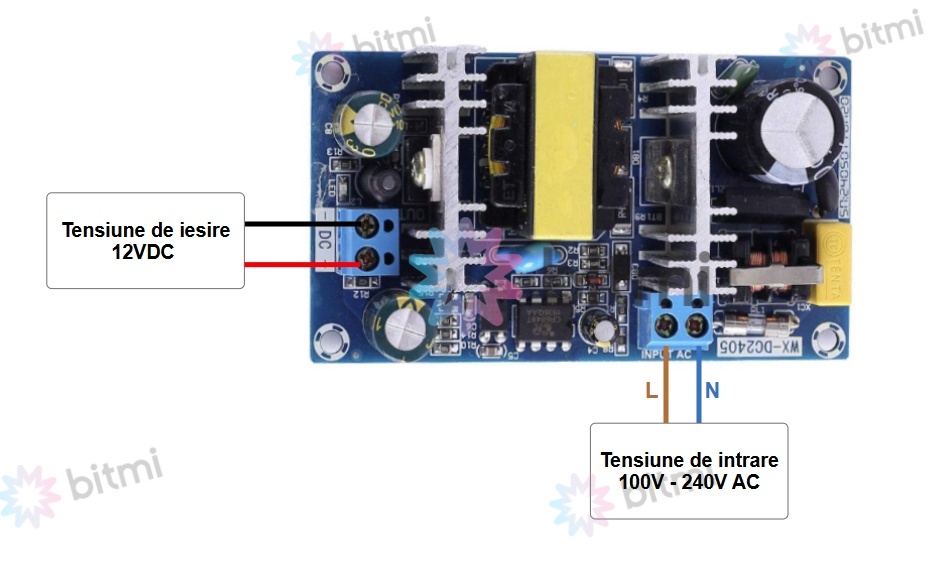 Schema de conectare sursa de alimentare 220VAC la 12VDC: