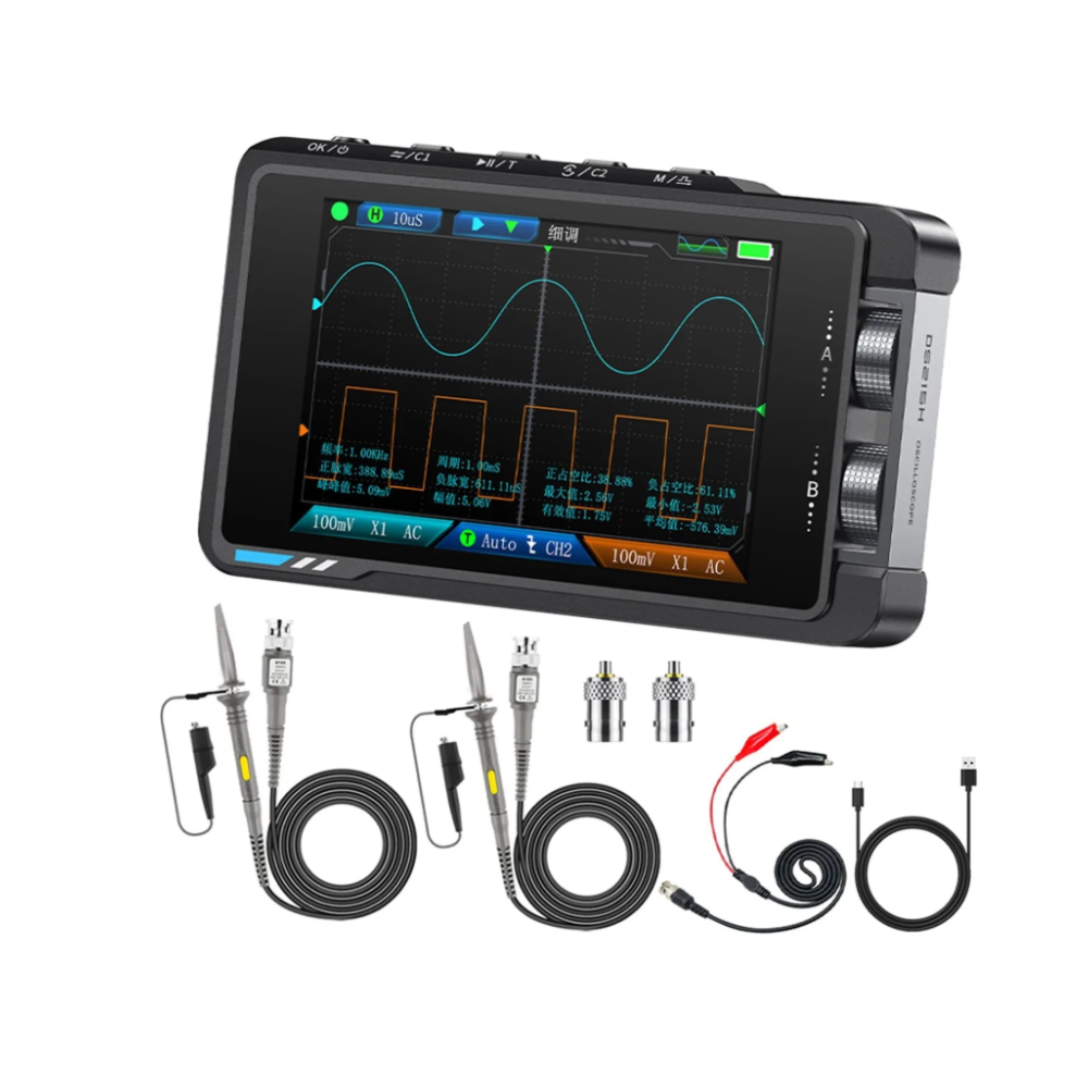 FNIRSI DS215H este un instrument digital 2 in 1, osciloscop digital cu 2 canale si generator de semnal. Conceput pentru electronisti, tehnicieni si cercetatori, acest aparat compact ofera masuratori precise si functii avansate, fiind ideal atat pentru depanare, cat si pentru proiecte de cercetare si dezvoltare. Cu protectie la tensiuni de intrare de pana la ±400V si respectarea standardului GB/T 15289-2013, dispozitivul garanteaza siguranta si fiabilitate.