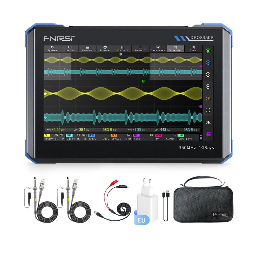 FNIRSI DPOS350P este un osciloscop digital portabil tip tableta, 4 in 1, care integreaza functiile unui osciloscop de inalta performanta , generator de semnal DDS, analizor de spectru si analizor de raspuns in frecventa. Acesta fiind un instrument complet pentru ingineri tehnicieni si pasionati de electronica.