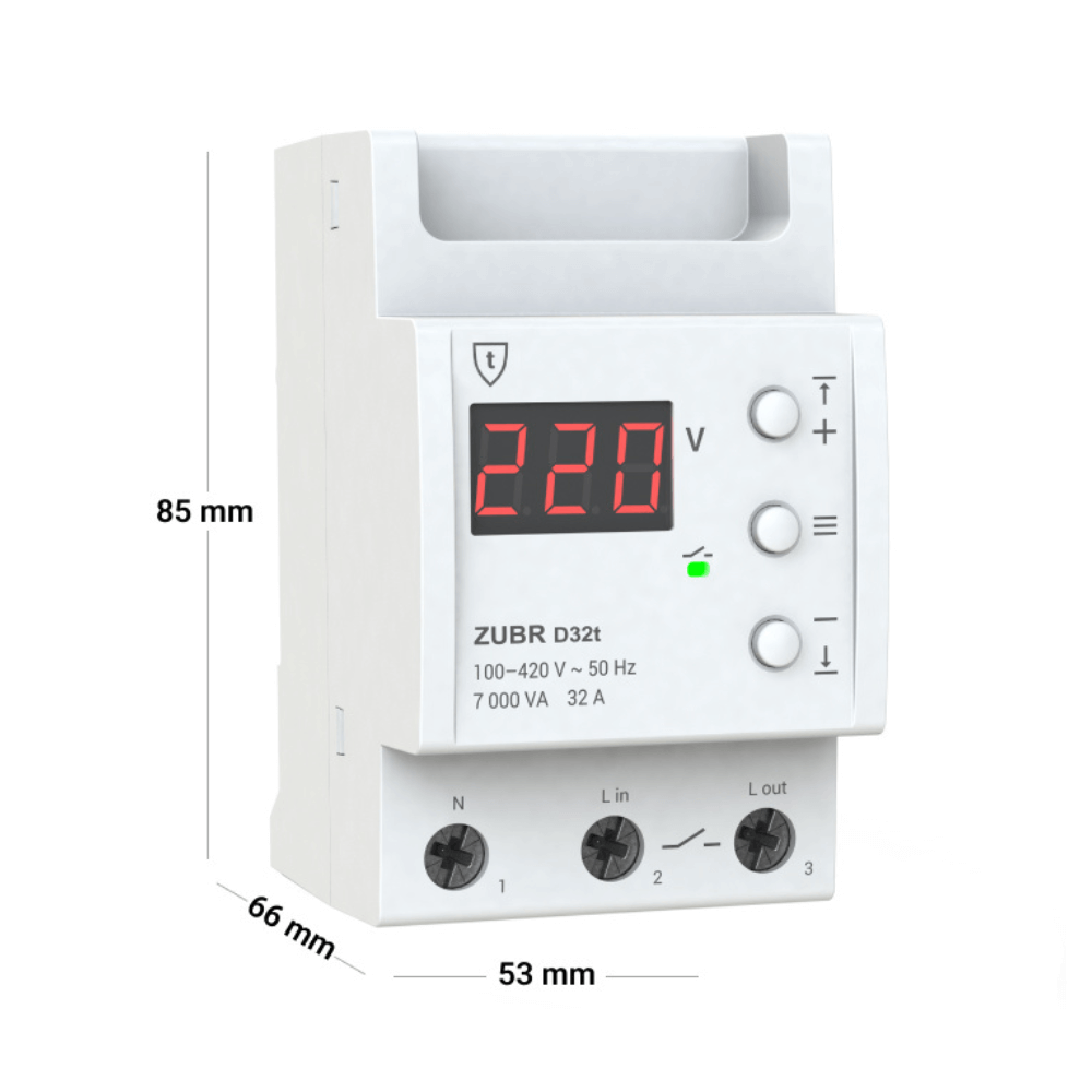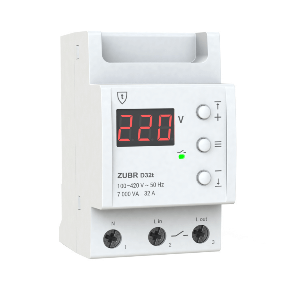 ZUBR D32t este un releu de protectie digital de inalta precizie, conceput pentru a deconecta automat echipamentele electrice in cazul unor variatii periculoase de tensiune in reteaua monofazata. Acest dispozitiv compact monitorizeaza constant parametrii electrici si asigura o protectie activa pentru intreaga locuinta sau pentru circuite specifice.