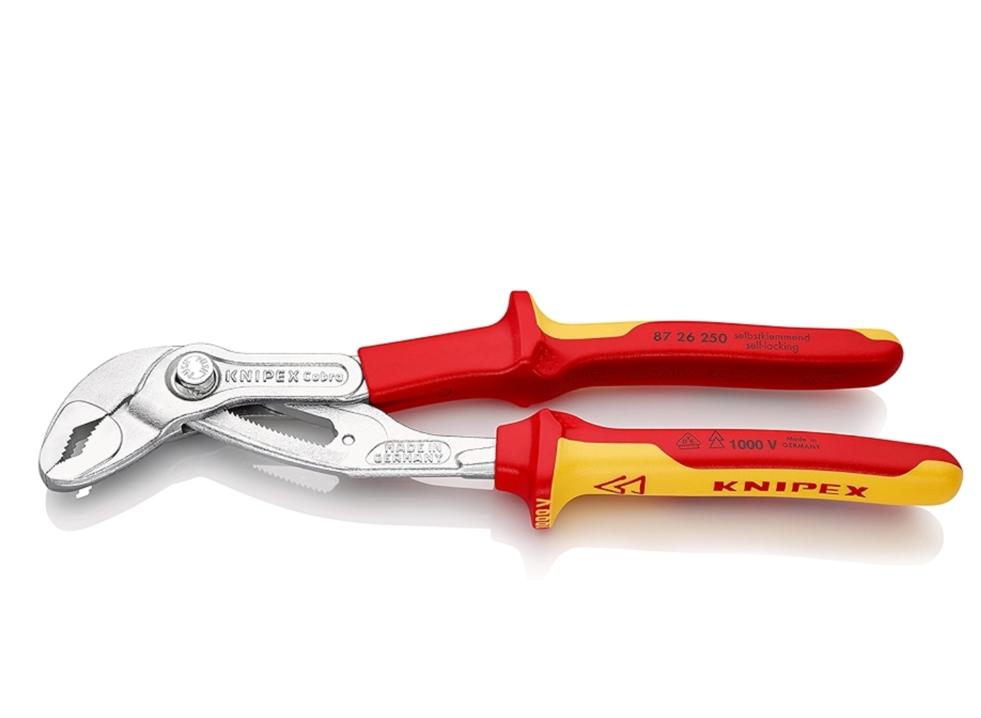 Clestele Knipex Cobra 87 26 250, cu o lungime de 250 mm, ofera ajustare rapida, izolatie electrica certificata pana la 1000V si este ideal pentru profesionistii din instalatii sanitare, HVAC si electricitate.