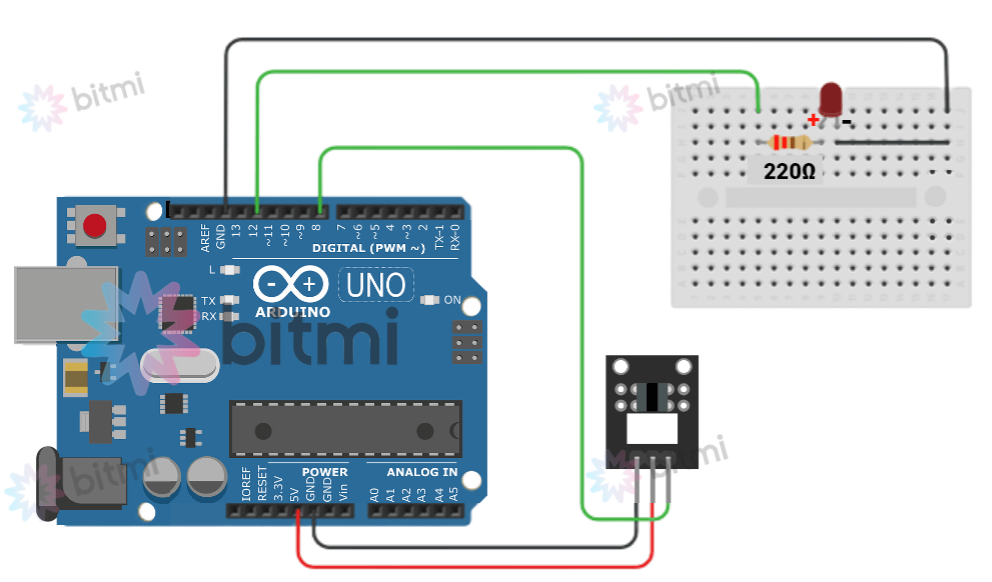 Schema de conectare modul senzor intrerupere lumina, KY-010: