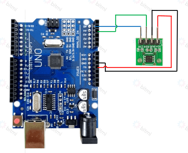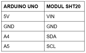Schema de conectare modul senzor SHT20, compatibil Arduino: