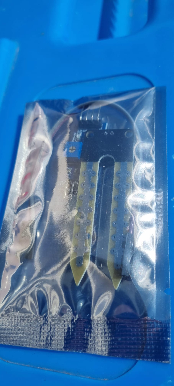 Acest modul este un higrometru ce se foloseste pentru a testa umiditatea solului. Cele 2 sonde vor intra in contact cu solul si vor masura umiditate pe baza modificarii rezistentei dintre cele doua placi conductoare. Rezistenta variaza in mod invers cu cantitatea de umiditate prezenta in sol.