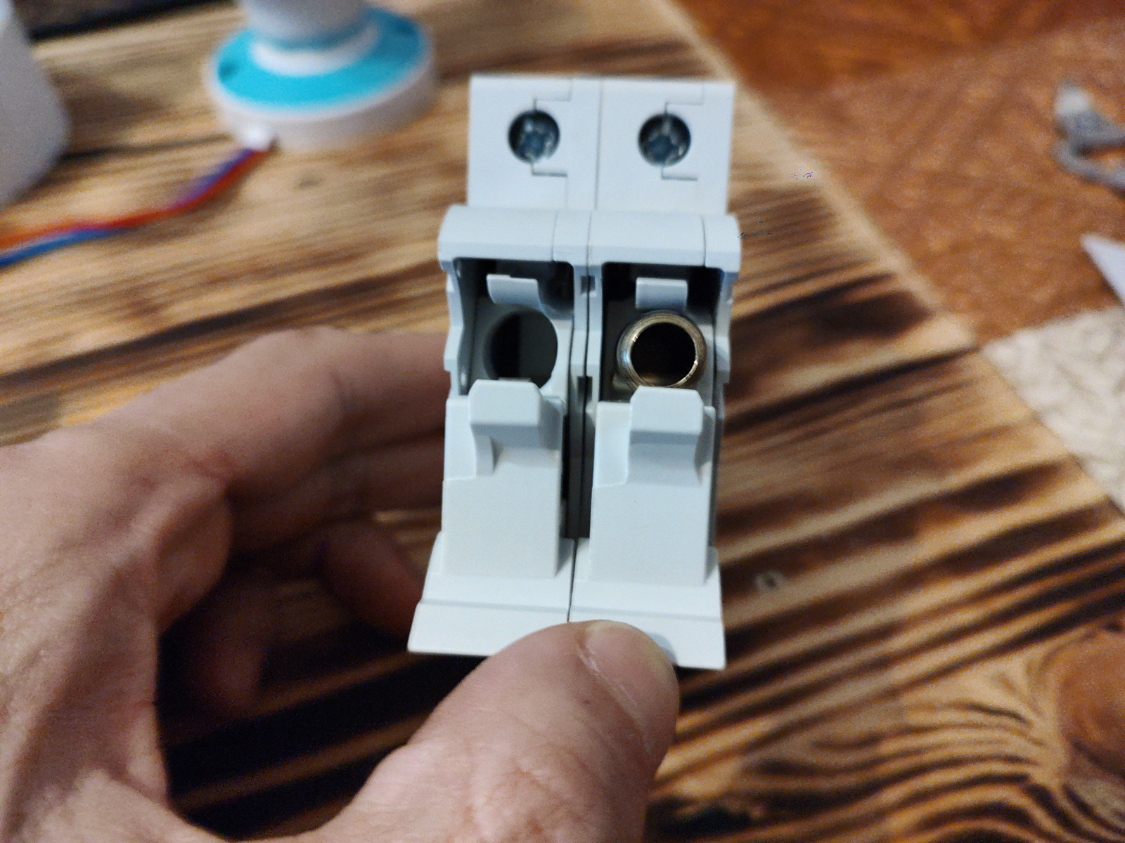 SiguranÈ›a fuzibilă se montează doar pe faza la acest model, iar nulul este conectat printr-un jumper de cupru, aÈ™a cum se poate vedea în poze.