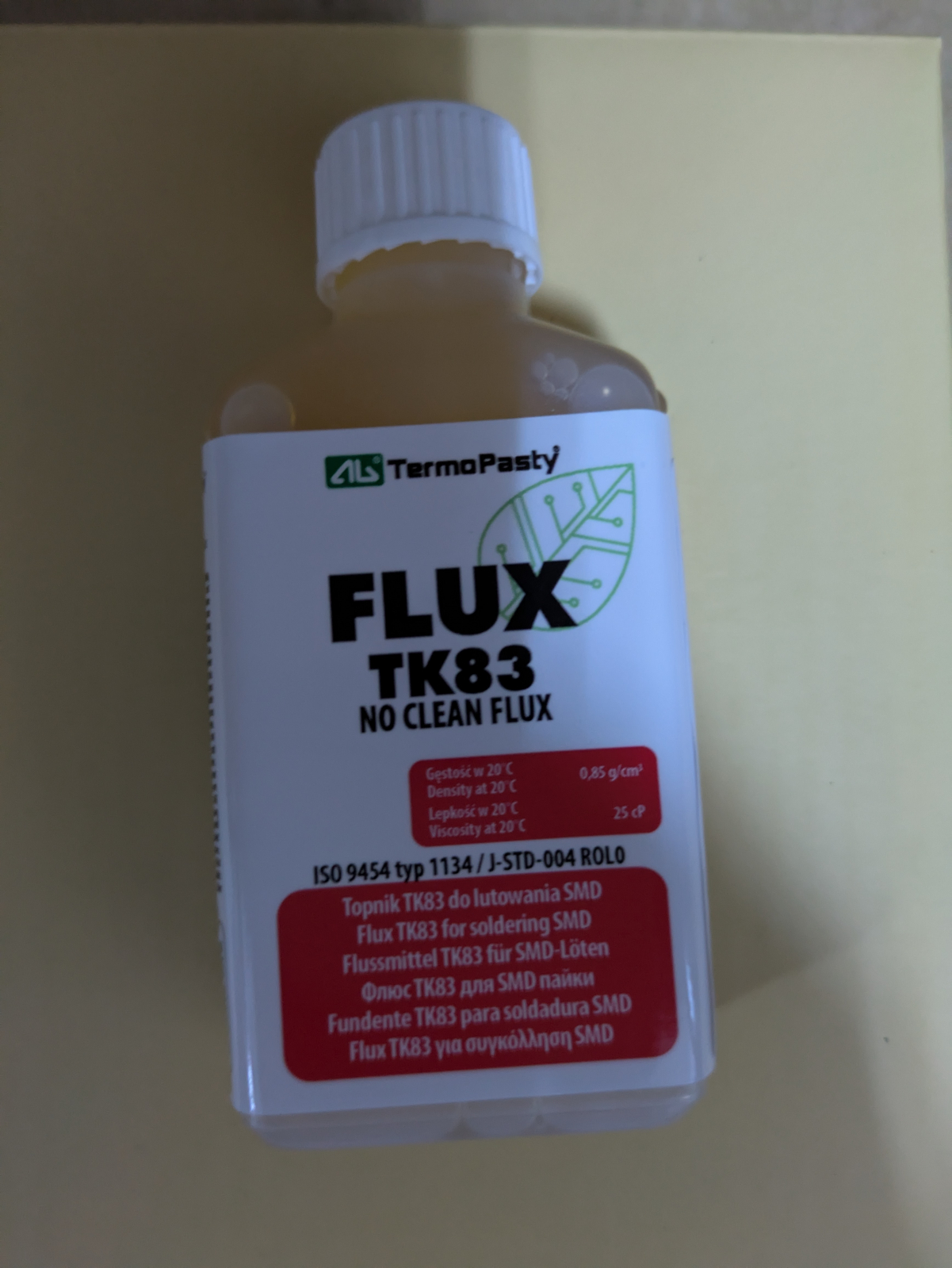 Fluxul lichid TK83 de la TermoPasty (ART.AGT-044) este un flux mediu activ, pe baza de colofoniu, cu aplicator tip pensula, ideal pentru lipiri SMD si reconditionari de lipituri.